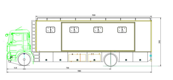 我公司设计的多功能宿营车可以满足外出执行人员住宿休息的后勤综合保障车辆,主要由 二类汽车底盘、扩展厢式车的结构形式、宿营设施,空气调节系统、影视系统、厕所系统、水 路系统、供配电系统、照明系统、换气系统等组成。能够满足24人的住宿,简单洗漱和方便。