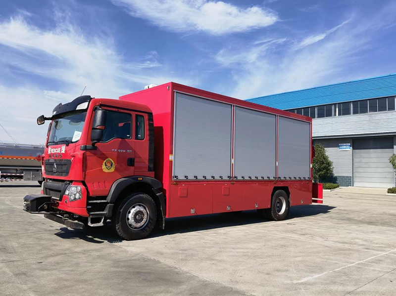 该车型救险车采用重汽ZZ5207TXFV471GF1底盘改装,主要由底盘、舱体、水路系统、电气系统、油路系统等组成,抢险救援器材车需具备良好的机动性,抢险救援器材设备齐全,取放使用方便。车厢内部布局合理,空间利用率高;行车状态下,各功能配置锁紧稳固,确保运输安全可靠;厢体左右两侧舱门采用铝合金卷帘门设计,除门框外左右两侧厢体全部面积能够打开,能够方便快捷的取放器材;厢体顶部装有升降照明灯,满足夜间作业照明需求;前置电动绞盘,可以实现自救,车尾配有液压起重机。我公司已完成近百例各类改装车的设计、制作,对各类底盘车的改制积累了较多的改装设计和制作的经验、逐渐形成了成熟的改装技术和制造工艺流程。在车辆改装中,未对底盘关键总成部件(如发动机、前桥、后桥等)进行改动,不影响底盘的稳定性、平顺性、制动性。改装后具有高机动,安全环保,使用便捷的特点,综合性能可靠。